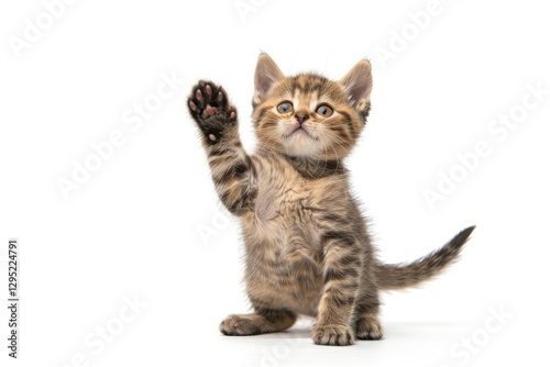 Premium Quality Visual of Playful Calico Kitten Standing on Hind Legs