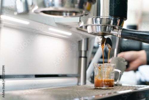 Preparing coffee in coffee shop with professional coffee machine