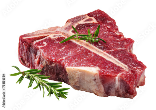 Preparing fresh t-bone steak with herbs kitchen food isolated on transparent background