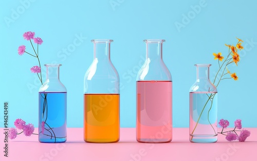 glasses, bottle, flower, colourful, vibrant, liquid, fresh, pastel, ideal, pattern, drink, layout, beauty, bright, project, design, spring, floral, modern, graphic, template, product, health, concept, scene, abstract, model, decor, process, texture, palette, plant, package, blueprint, image, water, background