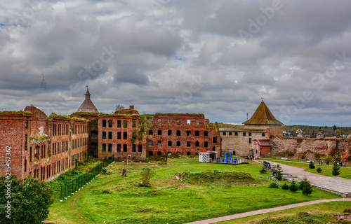 Preserved buildings of the ancient fortress on the island of Nut at the mouth of the Neva river.
