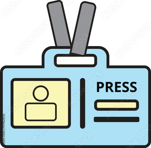 Press ID Card Icon Vector – Media Badge Flat Design Illustration