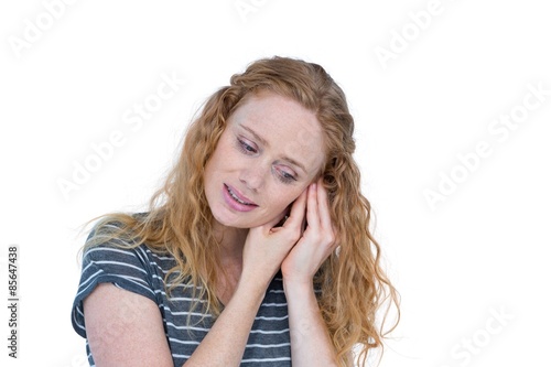 Pretty blonde woman having ache