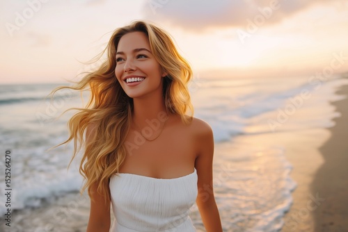 travel, blond, woman, summer, beach, dress, ocean, sunset, vibe, walking, carefree, pastel, sky, white, wave, girl, golden hour, serene, mood, coastal, lifestyle, walk, feminine, romantic, style, natural, light, fashion, dreamy, vacation, moment, freedom, concept, pretty, seasonal, season, sea, trip, hair, water, beauty, sand, person, smiling, happiness