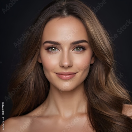 woman, beauty, hair, face, fashion, model, eye, brunette, person, glamour, people, closeup, make-up, closeup, smile, make-up, lip, skin, 1, teenage, elegance, studio, long, smiling, head