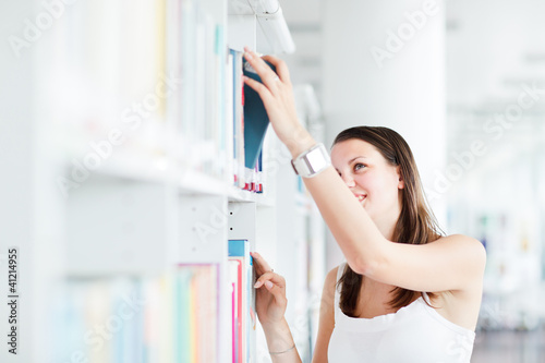 pretty female college student studying in the university library