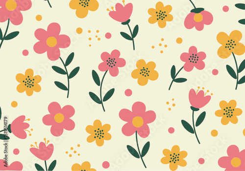 Pretty Floral Pattern Seamless Vector Illustration of Pink and Yellow Flowers
