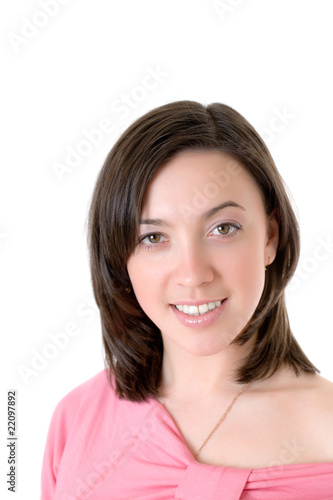 isolated, pink, portrait, young, girl, beautiful, beauty, adult, face, female, eye, hair, cute, fashion, woman, white, attractive, elegance, human, model, studio, brown, happy, pretty, smile, person, elegant, sensual, cheerful, background, head