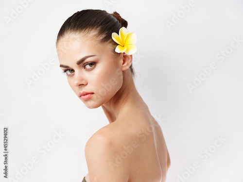 pretty woman cosmetics naked shoulders flower skin care