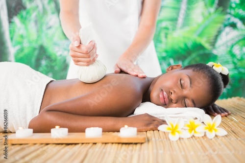 Pretty woman enjoying a herbal compress massage