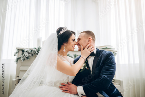 wedding, couple, bride, groom, white, happy, woman, man, beautiful, love, dress, young, beauty, female, romantic, suit, male, romance, happiness, marriage, bouquet, indoor, photogenic, portrait, lady, wife, husband, married, veil, together, fashion, event, bridal, embracing, caucasian, kiss