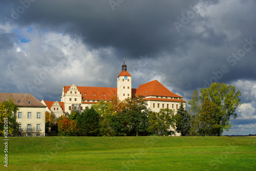 lock, baroque, saxon, sachsen-anhalt, tower, german, heaven, europa, castle, autumn, field, meadow, green, cloud