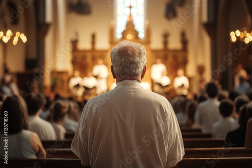 priest, church, worship, congregation, choir, stained-glass, religious service, spirituality, faith, tradition, pew, community, sacred, liturgy, devotion, ceremony, white shirt, clergy, christian, religion, stained glass window, people, soft focus, pastoral, ritual, holy, fellowship, divine, prayer