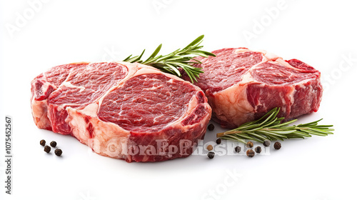 "Prime Cuts: Raw Ribeye Steaks with Aromatic Rosemary and Peppercorns"