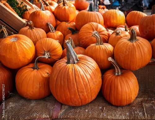 primer plano de calabazas naranjas exhibidas juntas durante la temporada de cosecha en mercado al aire libre