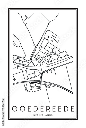Printable downtown road map poster of the Dutch city of GOEDEREEDE on solid white background with city name