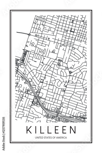 Printable downtown road map poster of the USA city of KILLEEN on solid white background with city name
