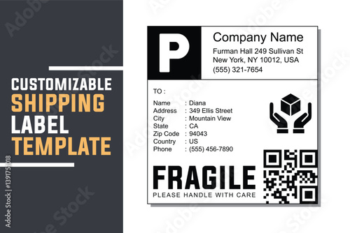 Printable Priority Mail Shipping Label Template, Editable Parcel Sticker with Barcode and Delivery Icons for Packaging