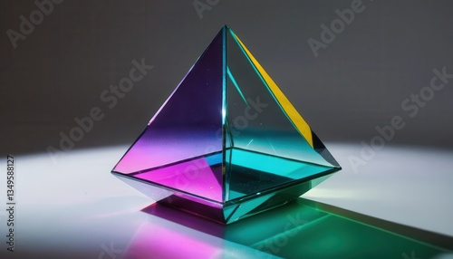 Prismatic tetrahedrons refraction displaying vibrant colors in minimalist setting