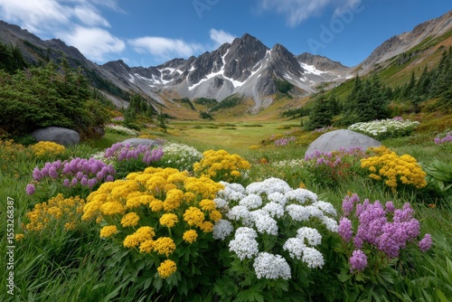 alpine, meadow, flower, landscape, natural, scenery, vibrant, colours, lush, greenery, sky, mountain, seasonal, bloom, nature, remote, scenic, beauty, calmness, peaceful, wildlife, outdoors, travel, photo, exploration, bright, sunny, plant, growth, flower petals, garden, blue, cloud, ecological, environment, flora, picturesque, panoramic, wildflower, sunlight, breathtaking, hiking, adventure, vacation