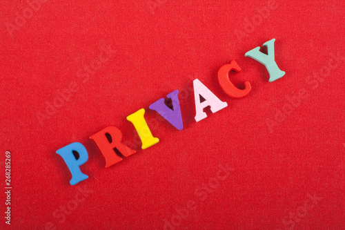 PRIVACY word on red background composed from colorful abc alphabet block wooden letters, copy space for ad text. Learning english concept.
