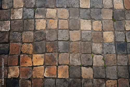 Processed collage of pavement cobble stones surface texture. Background for banner, backdrop