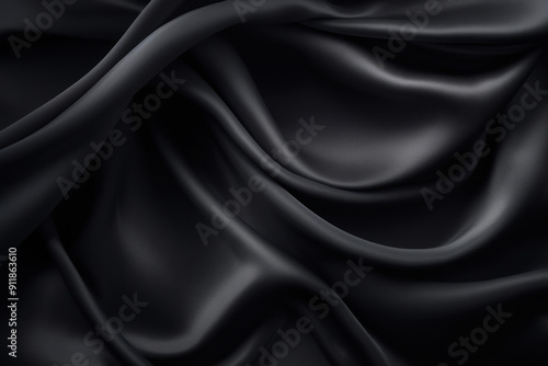 Processed collage of smooth elegant wavy deep black silk cloth fabric material texture. Background