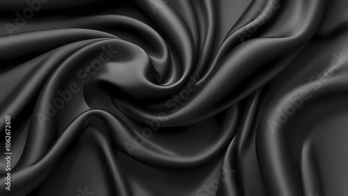 Processed collage of smooth elegant wavy deep black silk cloth fabric material texture. Background for banner, backdrop or texture for 3D mapping