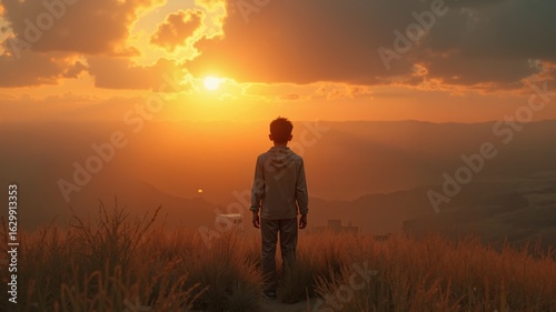 sunset, sky, nature, people, silhouette, sun, grass, person, landscape, field, woman, outdoors, walking, couple, summer, boy, beach, cloud, children, freedom, walk, family, travel, vacation