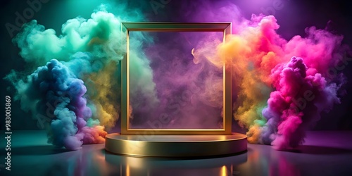 dais, smoke, colourful, vibrant, luxury, design, presentation, frame, background, creative, product, neon, swirling, bright, effect, modern, elegant, display, advertising, showcase