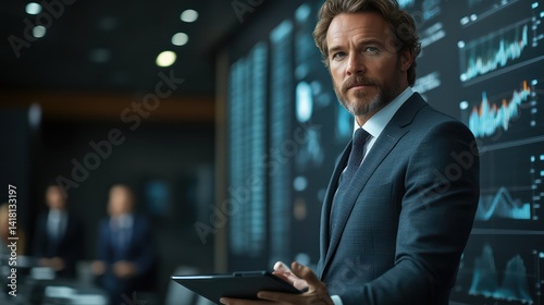 businessman, professional, tablet, business suit, corporate, technology, finance, stock exchange, graph, chart, leadership, executive, career, success, productivity, workplace, management, strategy, innovation, communication, teamwork, sharpened, concentration, smart, confident, industry, investment, growth, development, future, vision