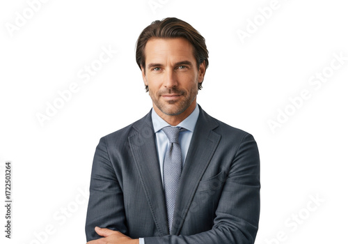 Professional businessman in suit portrait, confident executive, corporate leader, business attire isolated on transparent background