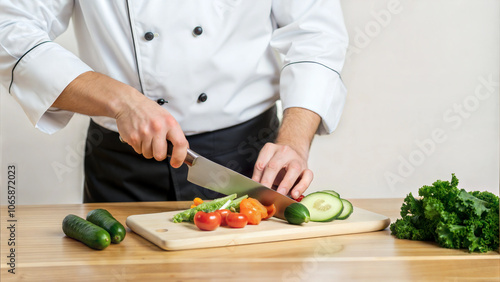 Professional Chef Preparing Fresh Vegetables in a Modern Kitchen