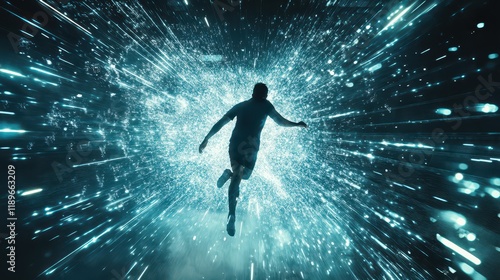 professional, football, or, soccer, player, action, stadium, flashlight, kicking, ball, winning, goal, wide, angle, concept, sport, competition, motion, overcoming, field, presence, effect