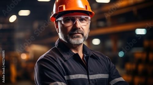 Professional industrial engineer wearing uniform working in a steel factory.