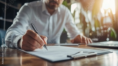 business, office, signing, document, paperwork, pen, man, professional, desk, table, formal, workspace, modern, light, business attire, concentration, agreements, closeup, sharpened, career, working, background, city view, negotiation, contract, planning, productivity, teamwork, writing, organisation, detail, communication, important, financial, success, information, indoor, collaboration, preparation, meeting, strategy, office supply, session