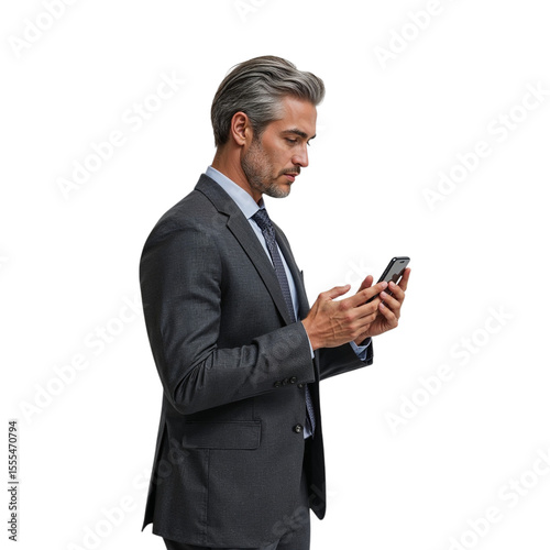 Professional man using mobile device isolated on a transparent background businessman
