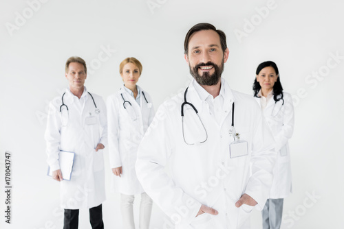 beautiful, happy, female, adult, people, smile, health, medicine, health care, disease, male, medicals, care, european, work, job, racked, together, profession, attractive, team, photogenic, mature, teamwork, confident, colleague, medicare, co-worker, doctor, professional occupation, isolated on white, studio shot, middle-aged, asian woman, caucasian woman