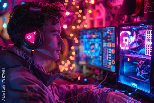 technology, streamer, gamer, game, player, computer, online, entertainment, cyberspace, earphones, home, room, play, young, digital, tournament, broadcast, live, neon, gaming, man, video, playing, headset, streaming, microphone, stream, lifestyle, competition, happy, cyber, fun, asian, monitor, keyboard, video game, sport, person, male, electronic, virtual, teenage, display, apartment, background, screen, talk