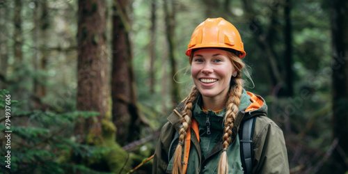 forestry, technician, smile, nature, outdoors, environment, conservation, forest, safety, helmet, reflective, vest, professional, woman, greenery, sunlight, ecology, sustainable, men at work, natural, happy, cheerful, workwear, protective, gear, occupation, job, environmentally friendly, flora, foliage, habitat, surveying, monitoring, wildlife, preservation, reforestation, natural resource, conservationist, ranger, botany, horticulture, dendrology, wilderness, green, orange, sunshine