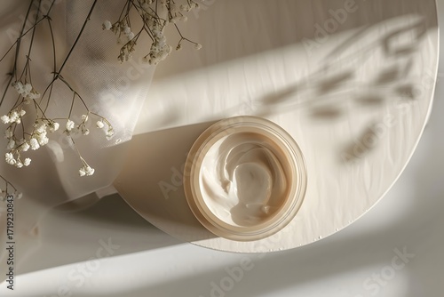 Professional Studio Mockup Displaying Open Skincare Jar Filled with Moisturizing Cream on White Surface Emphasizing Texture and Packaging Detail led light bulb on black