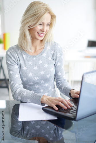 portrait, business, businesswoman, woman, woman, computer, laptop, working, office, mature, professional occupation, adviser, financial, assistant, attractive, looking, executive, confident, investment, job, corporate, people, person, paperwork, sitting, desk, communication, blond, ceo, 40s, 50s, smiling, happy