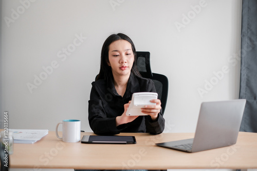 business, woman, calculating machine, office, laptop, tablet, professional, finance, desk, modern, work, technology, corporate, female, workplace, entrepreneur, digital, indoor, job, career, workspace, executive, computing, analysis, planning, productivity, sharpened, concentration, businesswoman, contemporary