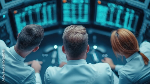 Professionals monitor advanced systems in a high-tech control room environment