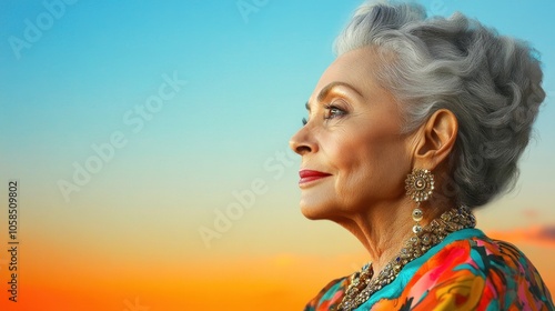 woman, elderly, portrait, sunset, beauty, elegance, profile, jewellery, fashion, coiffure, colours, serenity, age, wisdom, grace, nature, sky, light, expression, peace, culture, diversity, lifestyle, happiness, confidence, calmness, femininity, charme, style, warmth, moment, atmosphere, personality, joy, sophistication, smile, adornment, vintage, classic, soft, artistic, scenery, heritage, dignity, allure, calm, vibrant