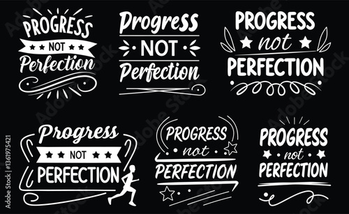 Progress Not Perfection Six Motivational Badge T-shirt Designs