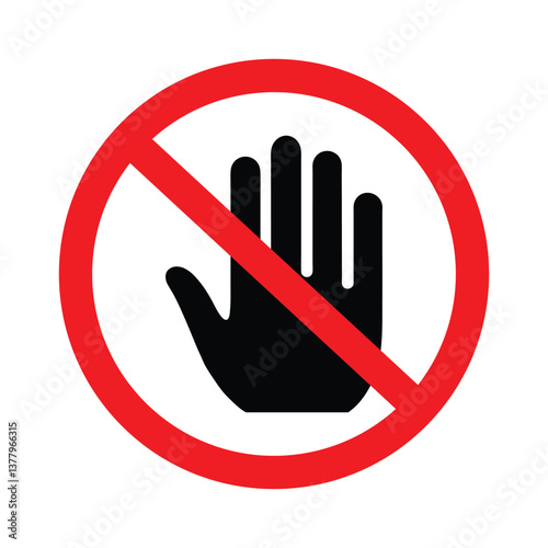 prohibited, hand, forbidden, caution, safety, warning, no entry, health, hygiene, sanitation, prevention, public health, industrial, sterile, medicals, vector, illustration, graphic, red, black, circle, silhouette, simple, health care, manufacturing, prohibition, pandemic