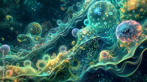abstract, microbial, biosphere, formation, kaleidoscopic, colours, shape, luminescent, energy, digital, rendering, surrealist, futuristic, style, underwater, utopia, general, environment, activity, action, technical, emotion, feeling, genre, captivating, prolific, vibrant, intricate, dynamic, beat, surreal, futurism, ecosystem, design, art, optical, image, creation, photo, biodiversity