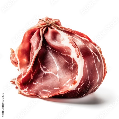 Prosciutto meat isolated on white background. Generative AI