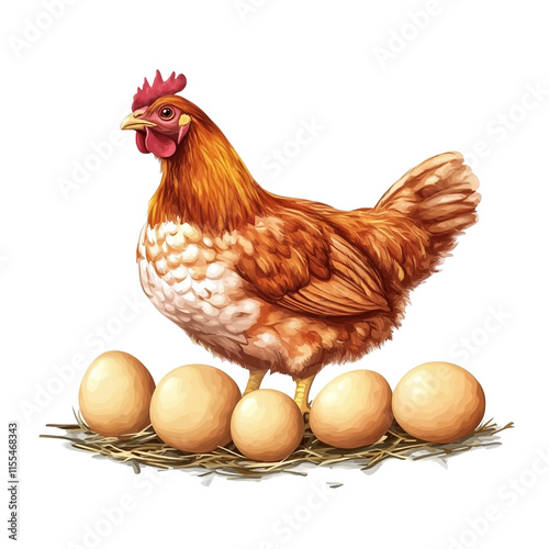 hen, chicken, egg, farm, rural, agriculture, countryside, bird, fowl, domestic, animal, feather, brown, orange, white, nest, hay, straw, nature, wildlife, farm animal, poultry, egg, laying, barnyard, backyard, produce, food, protein, breakfast, nourishment, healthy, diet, illustration, digital, art, graphic, design, image
